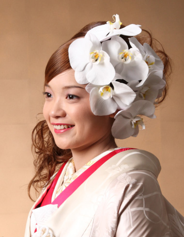 後ろから片方のサイドにかけ柔らかなボリュームのあるカールをだしフワッと上品なダウンスタイルです。